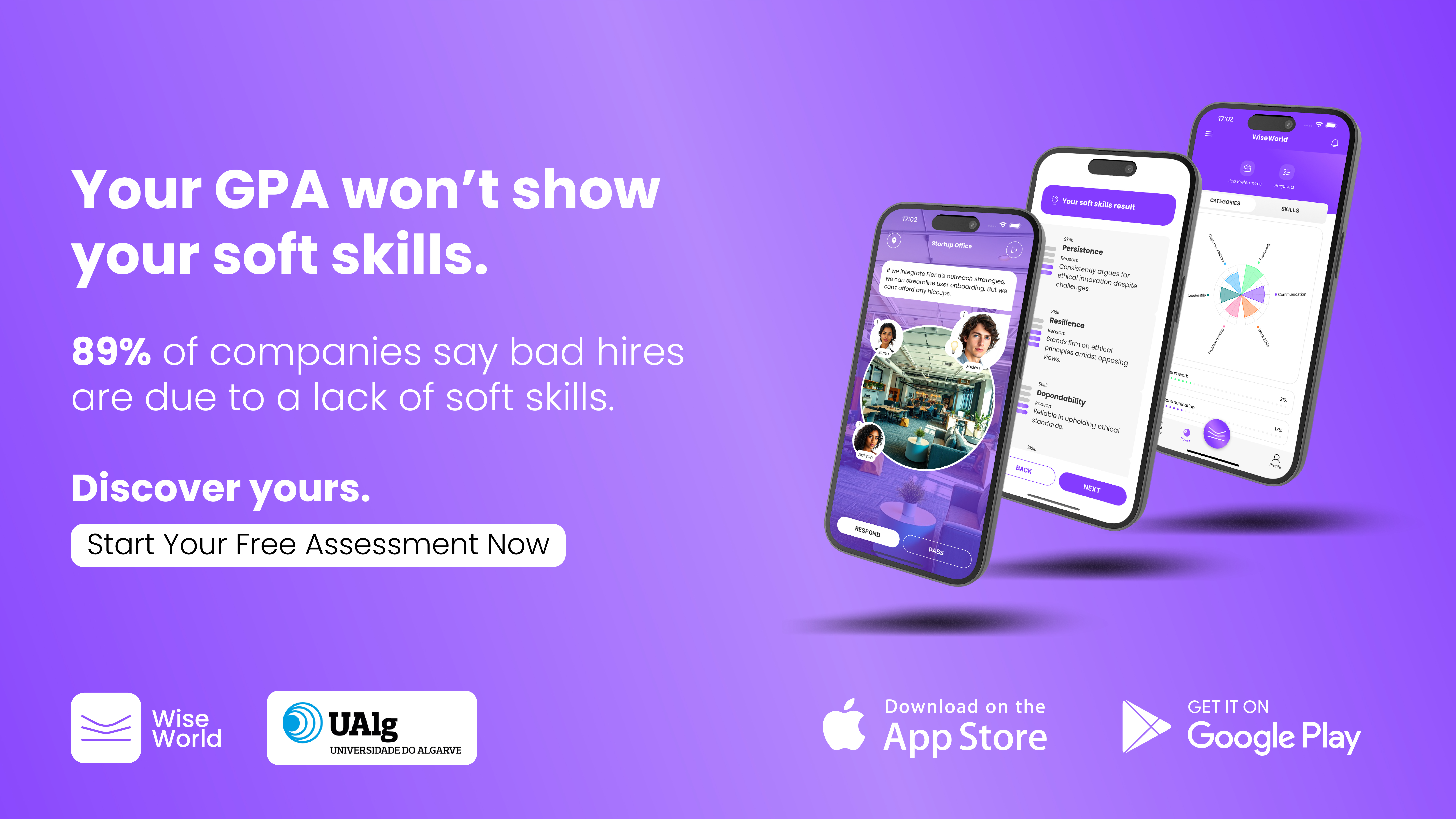 O seu diploma é apenas o início. São as suas competências interpessoais que lhe abrirão portas - comece hoje mesmo a sua avaliação gratuita do WiseWorld!