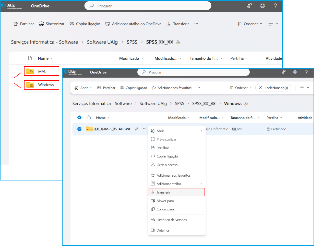 Aceder à pasta de Software UAlg, partilhada no Onedrive, para obter os ficheiros de instalação do SPSS
